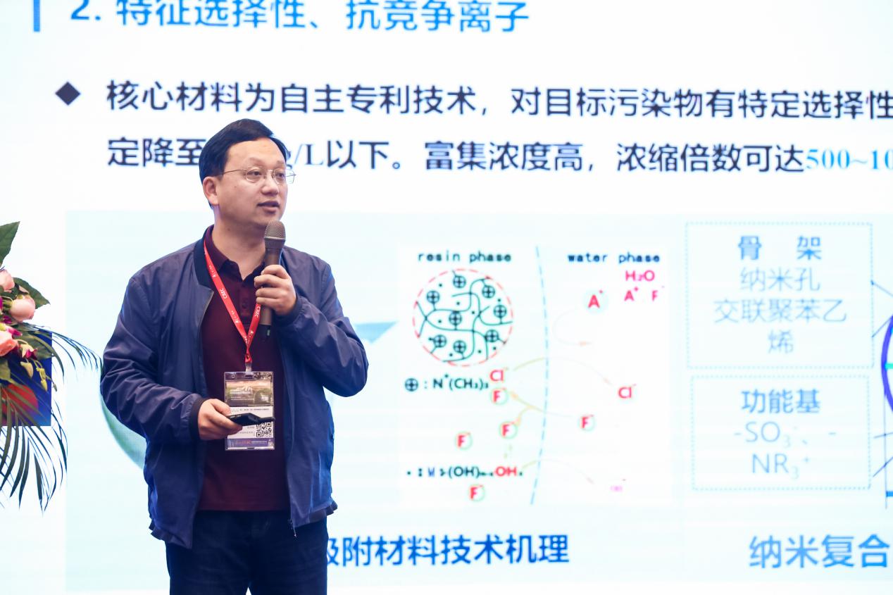 國家環境保護有機化工廢水處理與資源化工程技術中心主任、南京大學教授/博導、南大環保副總經理張煒銘為現場嘉賓詳細介紹了深度除氟除磷一體化解決方案的特點及優勢。他表示,隨著我國經濟發展與環境污染日漸嚴重,應急水處理需求越來越多,例如企業廢水庫潰壩、廢水泄露、黑臭水體治理等,需要在短時間內處理至地表水水質標準后達標排放。南大環保深度除氟除磷撬裝設備可滿足不同場景下的水體應急處理需求,依托自主研發的特定選擇性、抗競爭離子核心專利技術,能夠很好地解決水處理行業中氟化物和磷酸鹽的深度去除難題,廢水經過撬裝設備的工藝流程及深度處理后,出水可達出水F-≤1.0mg/L、PO43-≤0.1mg/L,根據需求可實現出水氟化物穩定低于0.5mg/L,PO43-低于富營養化限值0.02mg/L,有效改善了水環境和水生態。
